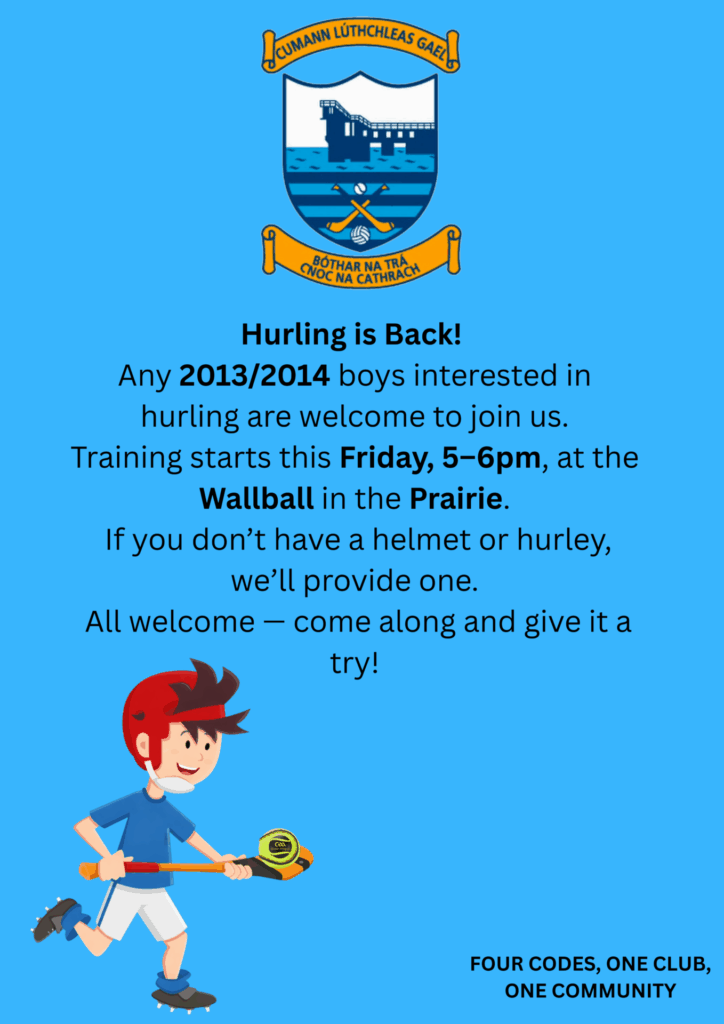 Any 2013/2014 boys interested in hurling are welcome to join us.